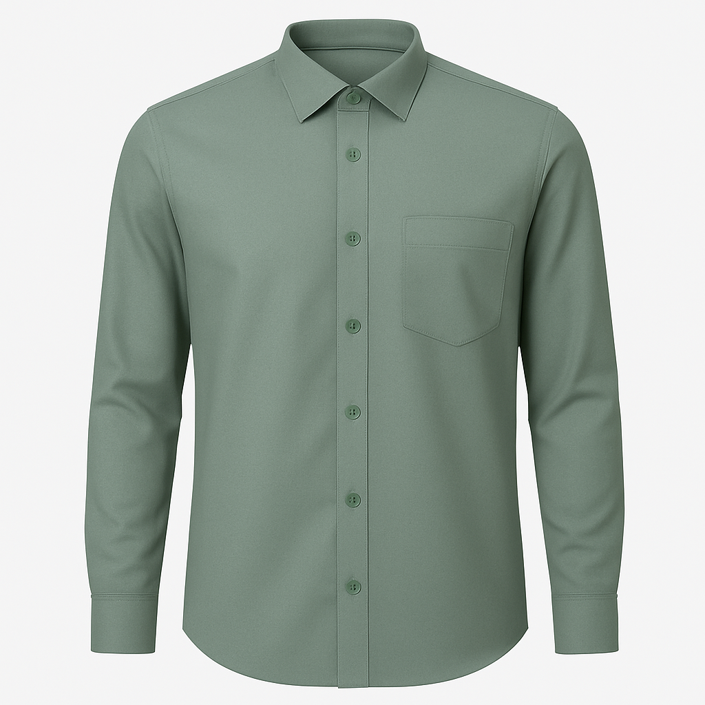 Men’s Sage Green Solid Slim Fit Formal Shirt – Full Sleeves | Minimal & Modern Office Wear