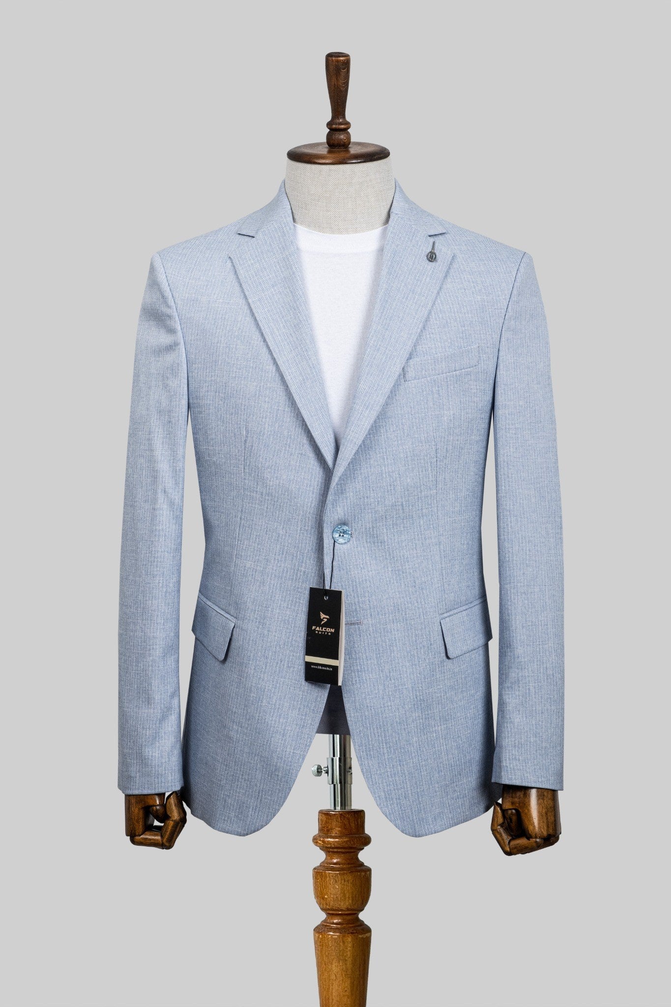 Elevate your style with the Skyline Mist – European Linen-Blend Light Blue Pinstripe Blazer from Falcon Suits. Designed for men who prefer sophistication without excess, it features a powder-blue tone with a fine pinstripe texture—versatile for weddings, parties, and formal meetings. Crafted in Europe with expert tailoring, the breathable linen-blend offers a clean silhouette, smooth drape, and comfortable all-day wear. Pair it with a tee or a crisp shirt for an effortlessly polished look.